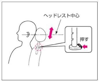 ヘッドレストの中心が、耳の高さになる位置に調節します。