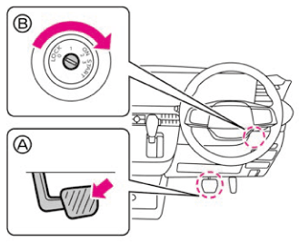 - 高速走行後や登坂走行後などエンジンがかかりにくいときは、アクセルペダルを少し(踏み込み量の約1/5)踏み込んだ状態でエンジンを始動し、エンジンがかかったら、アクセルペダルをエンジン回転数の上昇に合わせて徐々に戻します。
