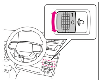 ヘッドライトが下向きのとき、ダイヤルを回して調節します。