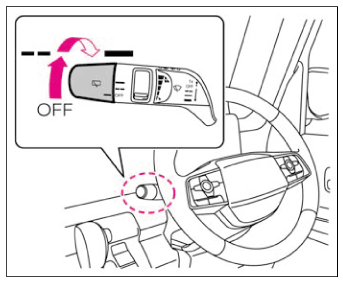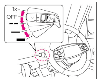 - スイッチを引いている間はウォッシャー液の噴射とワイパーの作動が続き、レバーを離すとワイパーが数回作動してから停止します。