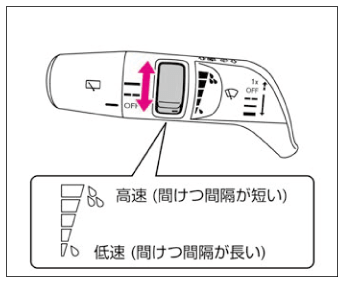 - 間けつ作動の間隔は、車速が速くなると短くなる車速感知式です。