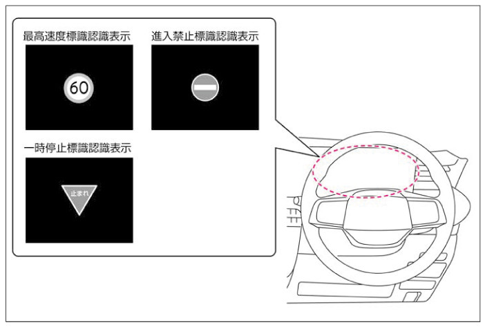 - マルチインフォメーションディスプレイで[設定]⇒[運転支援]⇒[標識検知支援]を選択すると、進入禁止標識認識機能/一時停止標識認識機能のON・OFFを切り替えることができます。