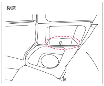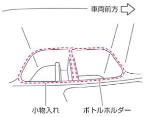 助手席側の後席ボトルホルダー車両後方部は、小物入れになっております。ボトルホルダーとして使用しないでください。
