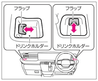飲物の容器の形によっては、確実に固定されないおそれがあります。 - 車室内のスイッチや画面などに飲物をこぼさないようにする。