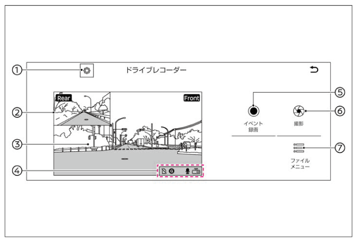 - 走行中にカメラ画面は表示されませんが、[撮影]と[イベント録画]は使用できます。