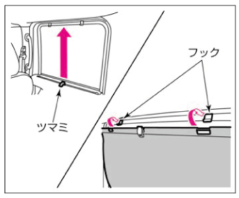 - ロールサンシェードを使用しているときは、窓ガラスを開けた状態で走行しない。