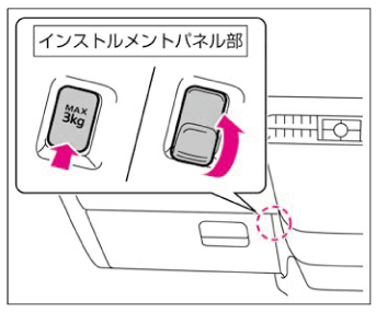 - 3kg以上の物を掛けない(インストルメントパネル部)
