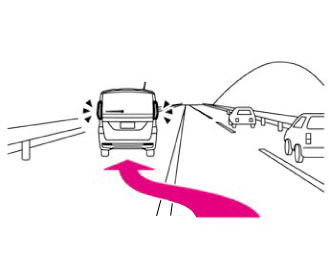 煙で視界が悪くなり、他車の走行の妨げとなり、事故につながるおそれがあります。非常点滅表示灯を使ってください。