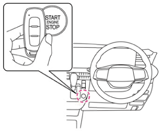 ブレーキペダルを踏み、キーのロゴの裏面を<エンジンスイッチ>に接触させます。