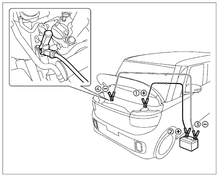- ジャンプスタートを行うときは換気を十分に行い、火気は近づけない。
