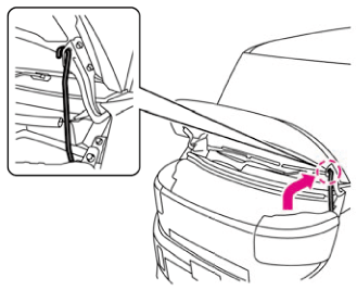 エンジン停止直後はステーが高温になることがあるため、やけどをするおそれがあります。 - ボンネットを開けたときは、ボンネットに頭などをぶつけないよう注意する。