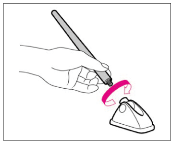 - 取り付けるときは、アンテナの根元を持ち、矢印と逆方向に回し、確実に締め付けます。
