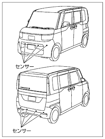 汚れているときは、柔らかい布で傷つけないように注意してふき取ってください。 - センサーまたはその周辺に強い衝撃を与えないでください。またセンサーの取り外し、分解などをしないでください。故障、誤作動の原因になります。事故などでセンサーの取り付け部が変形した場合は、三菱自動車販売会社にご相談ください。