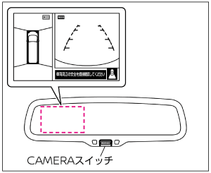 自動防眩ルームミラー付車は、電源ポジションがONのときに、CAMERAスイッチを押すか、セレクターレバーを