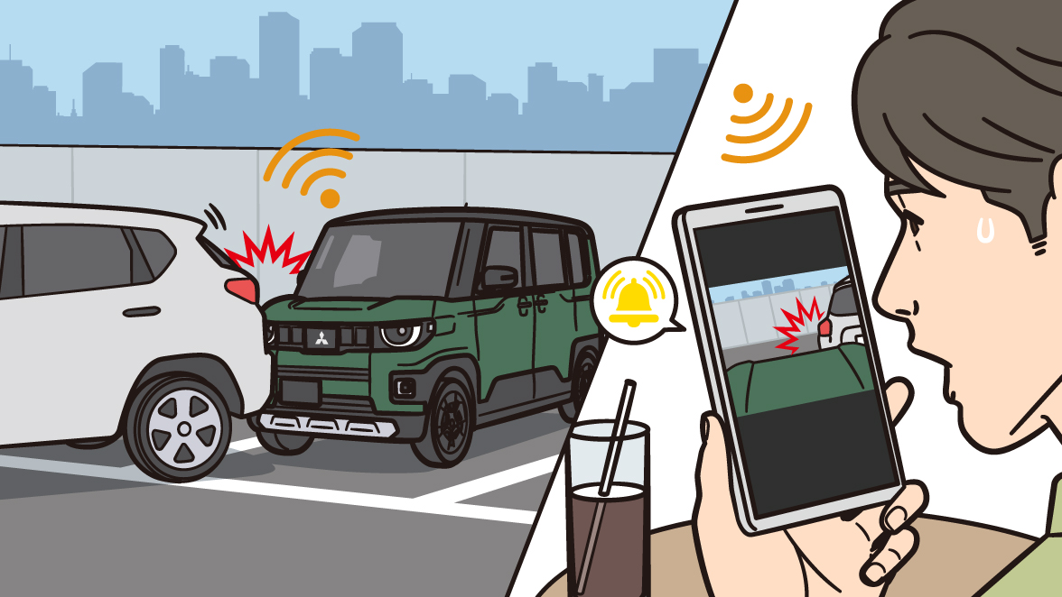衝撃感知時に自動で静止画を撮影しスマートフォンアプリに通知します。また、スマートフォンアプリから任意のタイミングで撮影することもできます。車から離れていても即座に異常を確認できる安心機能です。