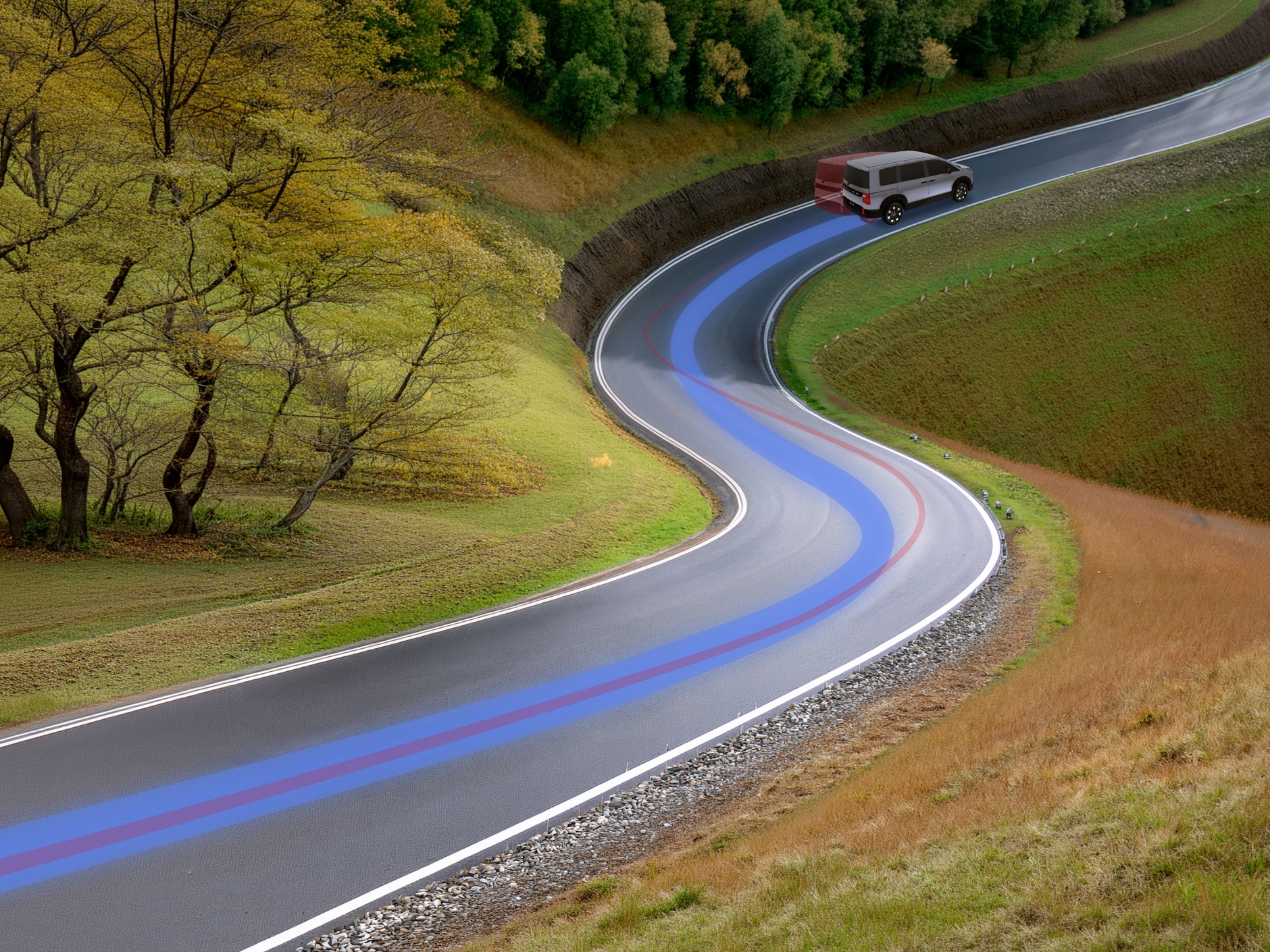自動でそんな細かい調整までしてくれるんだ…!外に膨らまないカーブって快適でいいね。