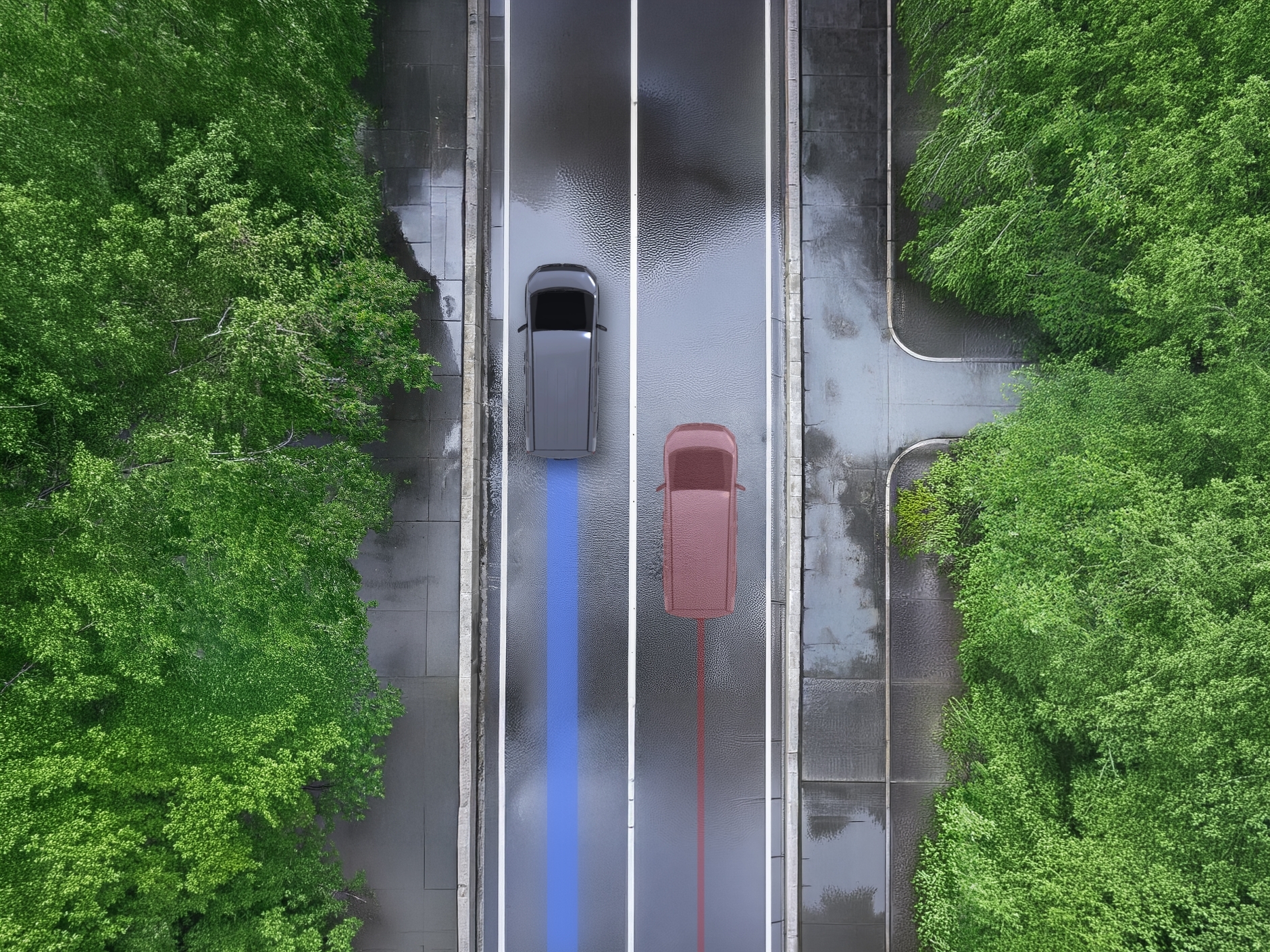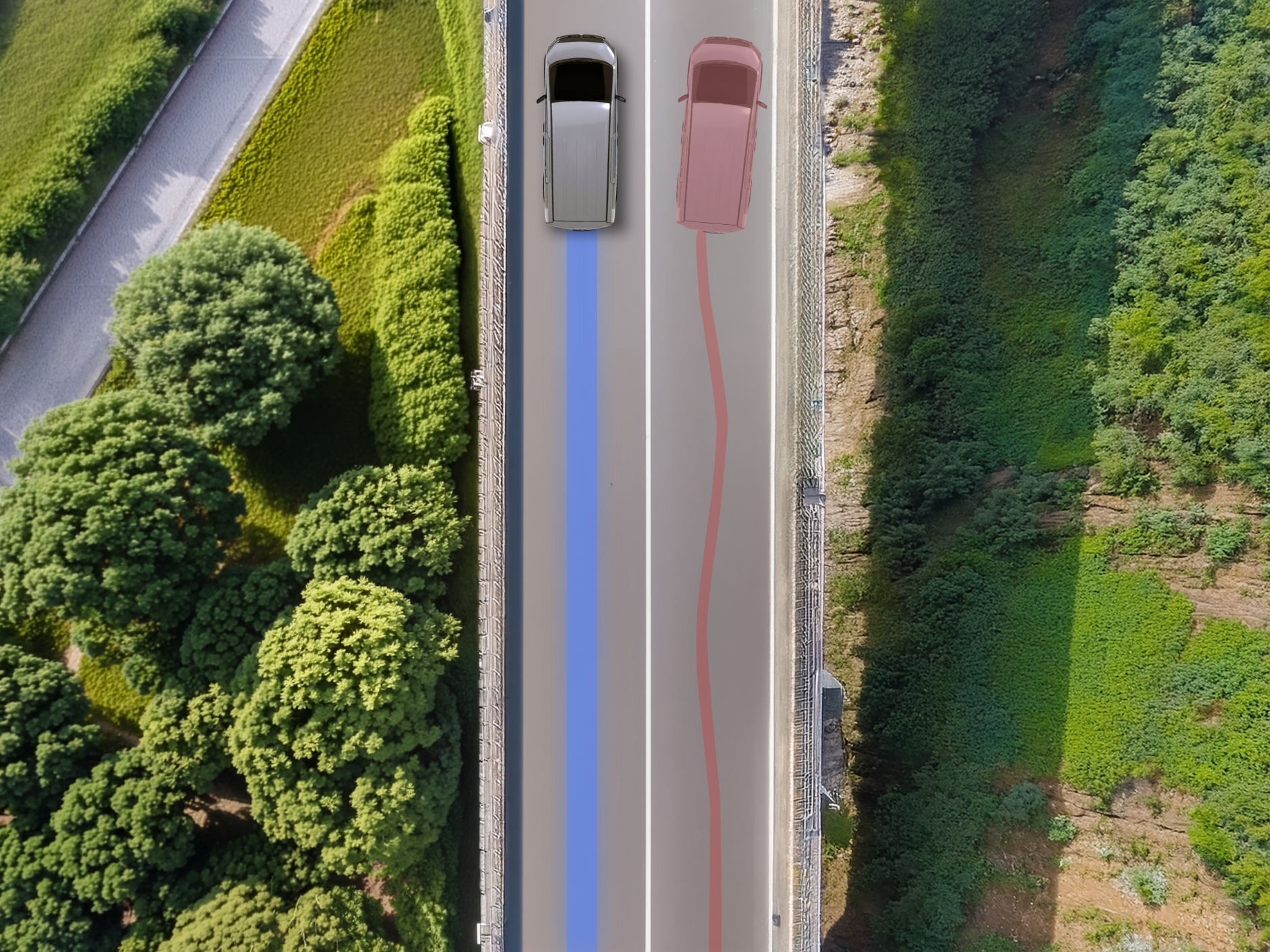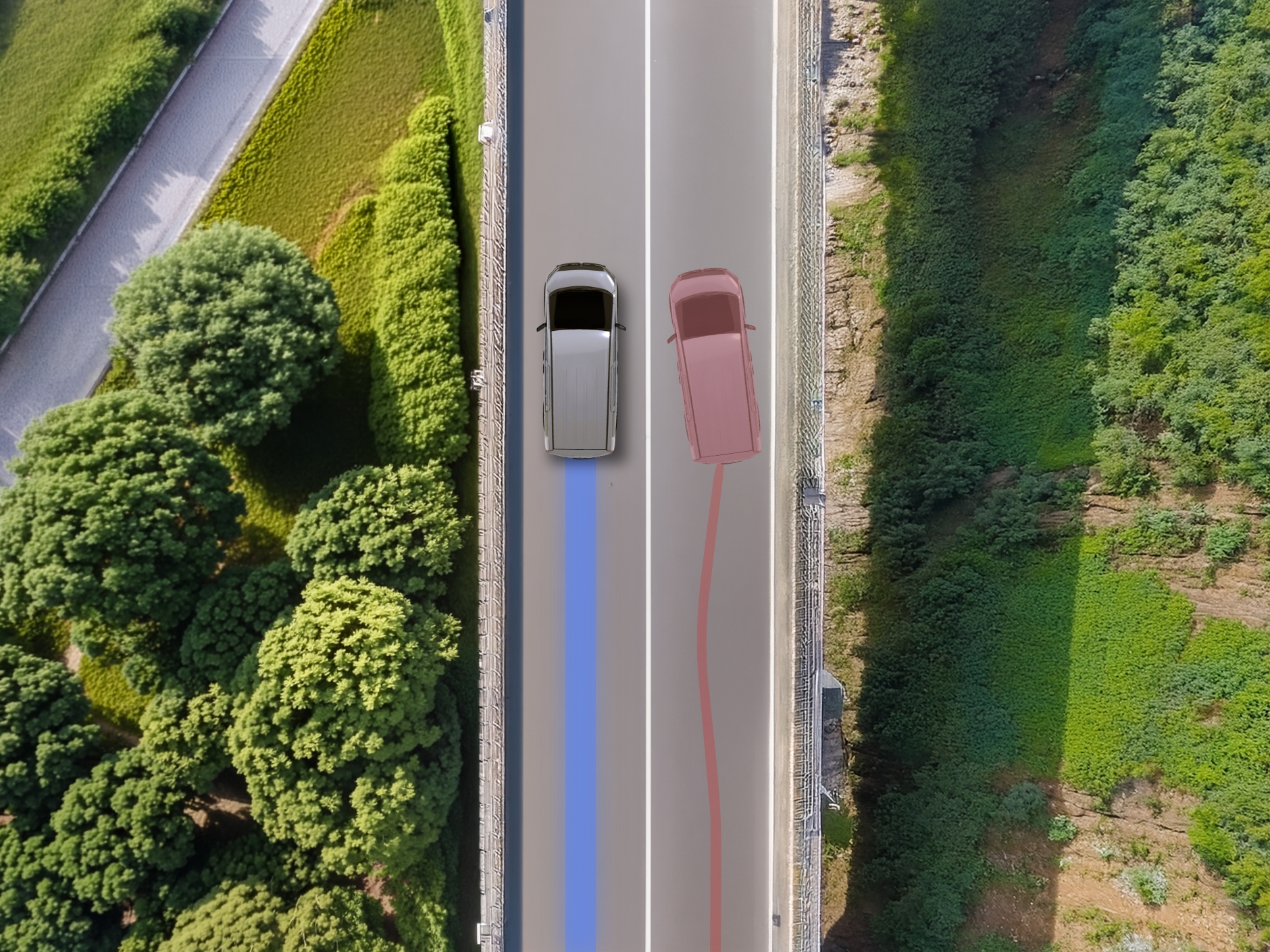 雨の高速道路、横風が吹く橋の上、