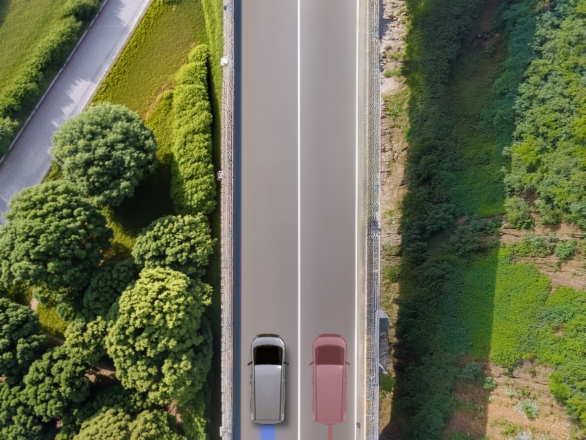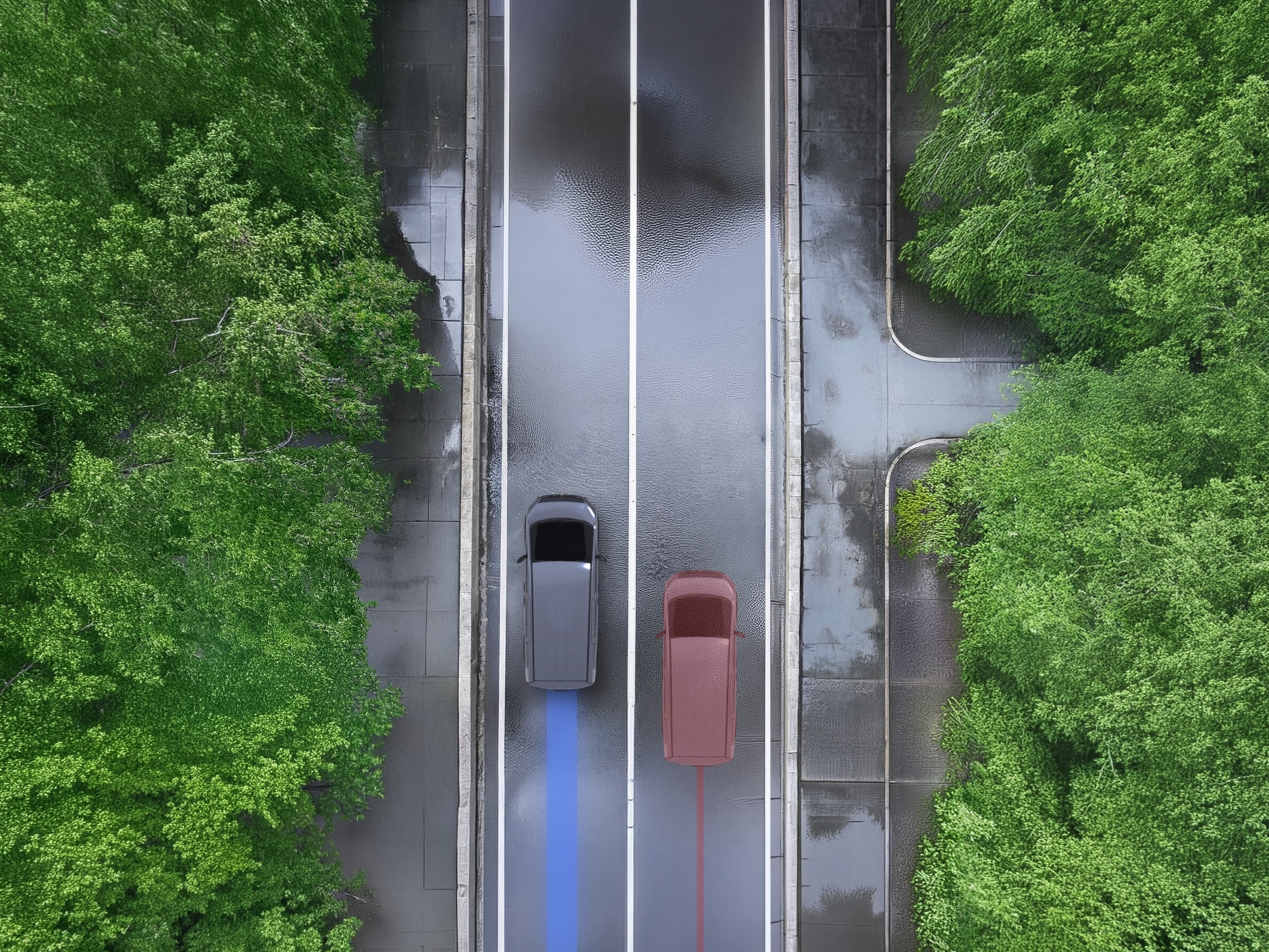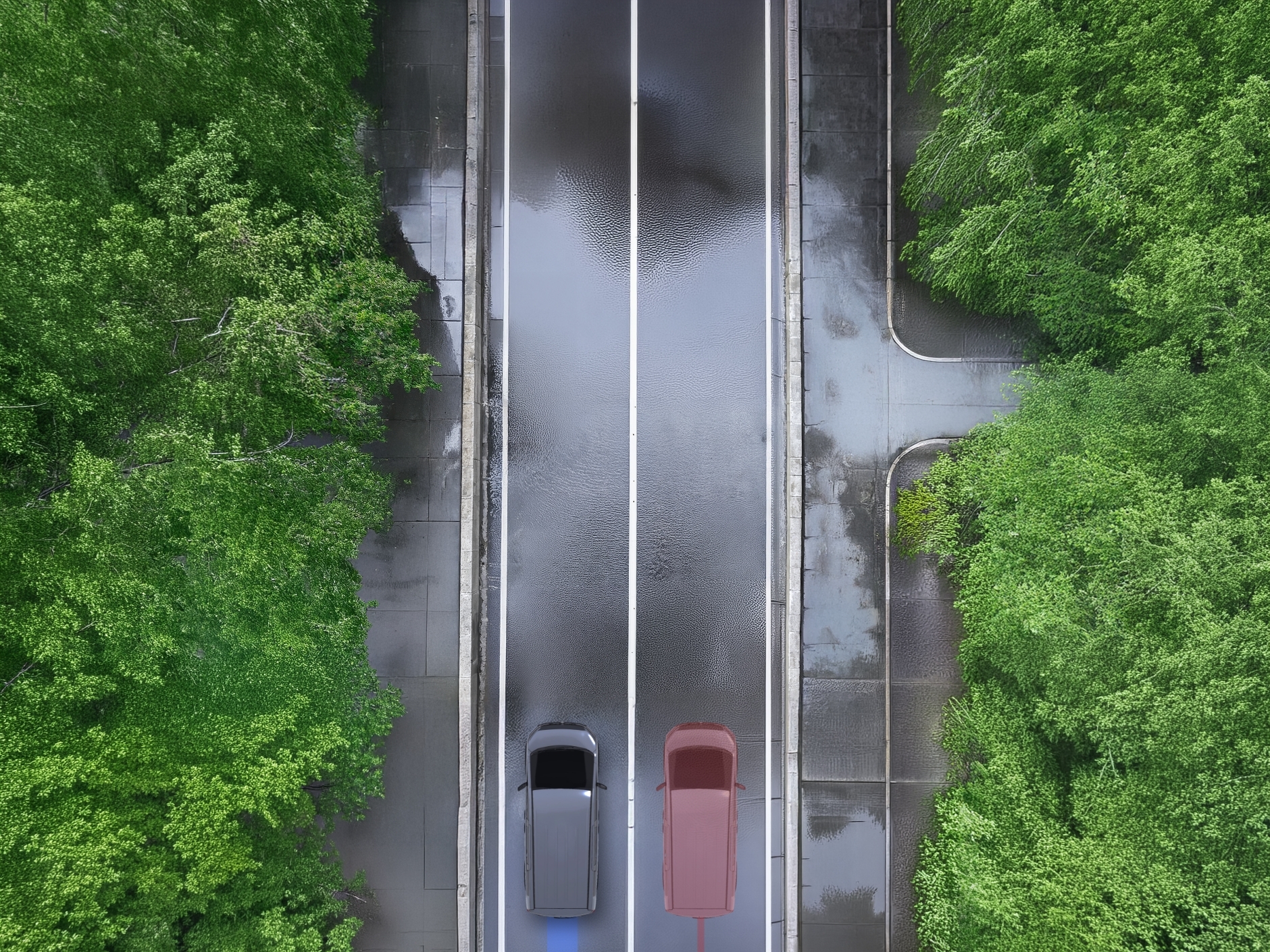 雨の高速道路、横風が吹く橋の上、