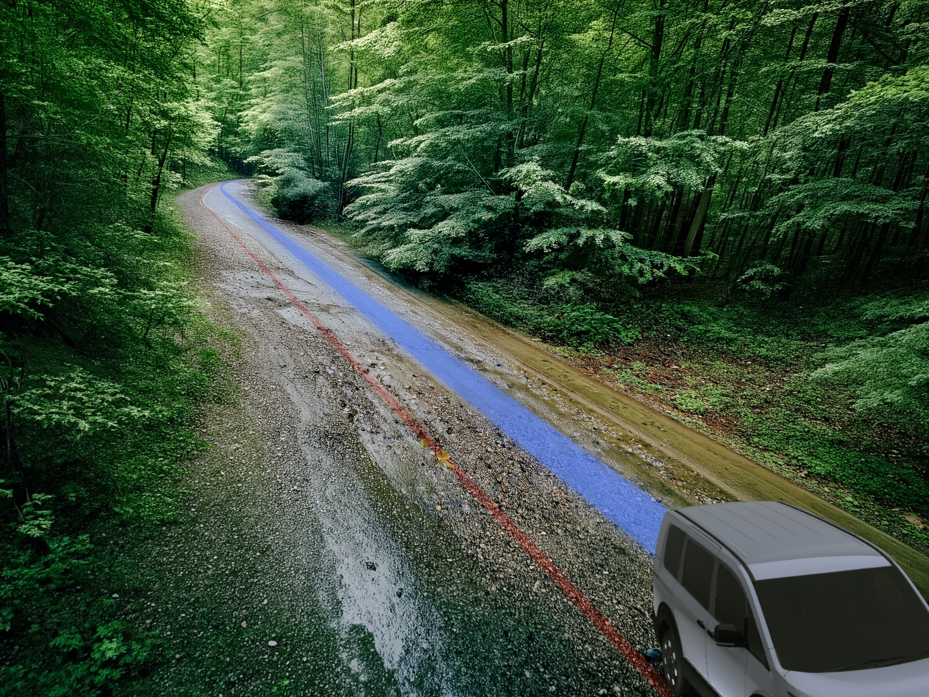 荒れた道が多くなってきたから注意して運転するね。