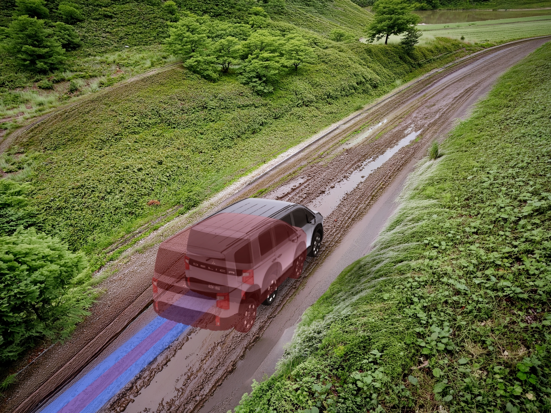 すごい…それならオフロードも安心だ。どんな道でもデリカが判断してくれるから心強いね!