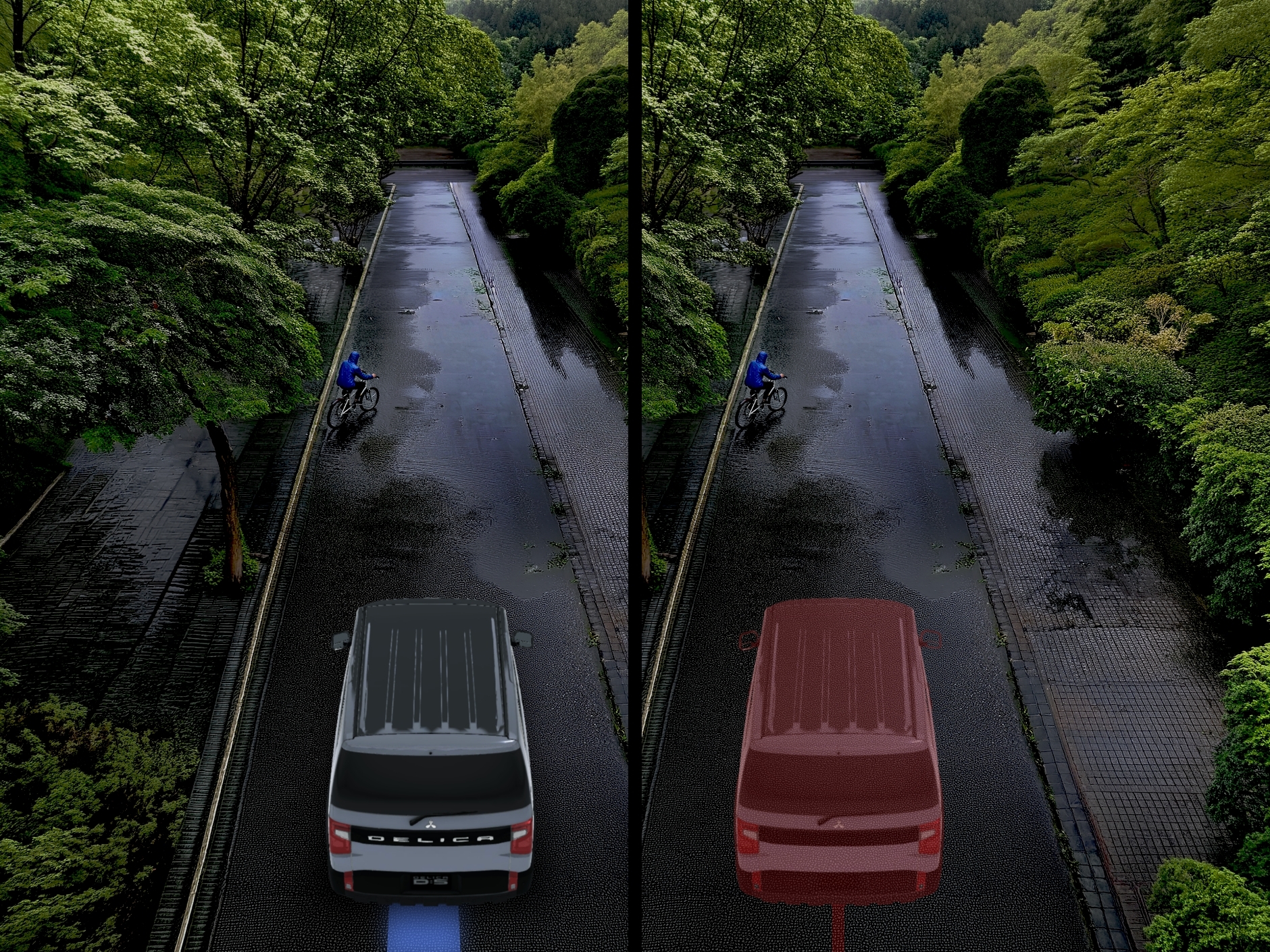 それは安心だね!デリカってオフロードのイメージが強いけど、こういう街中の大雨でも頼りになるのかあ。