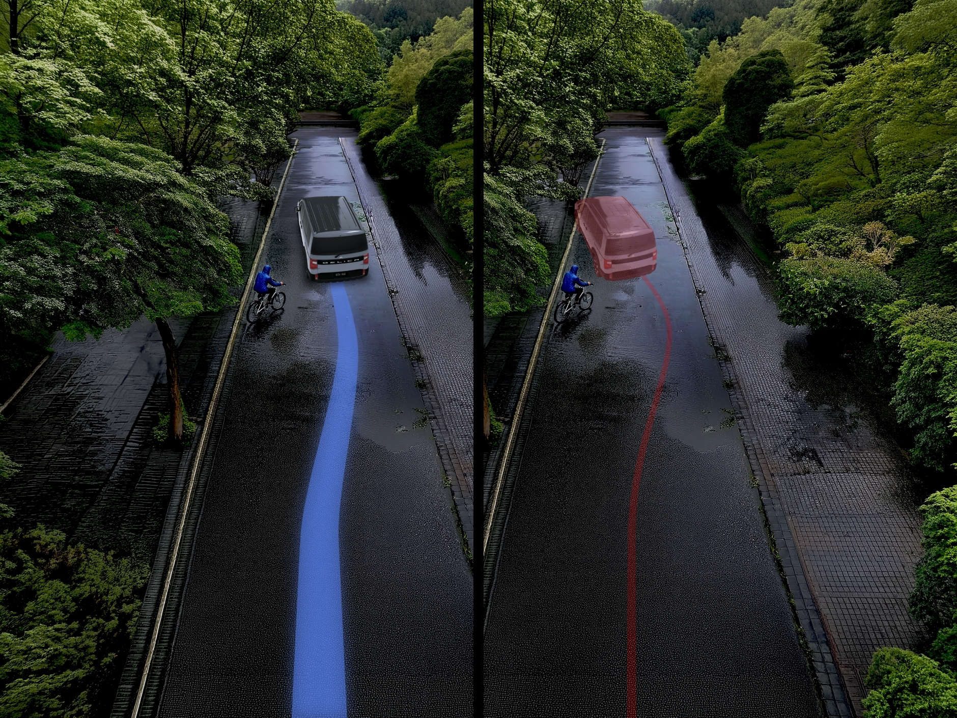 ははは、デリカのおかげだよ。急カーブの時は、内側のタイヤにだけ小さくブレーキをかけてくれて、綺麗に曲がれるようにサポートしてくれるんだ。