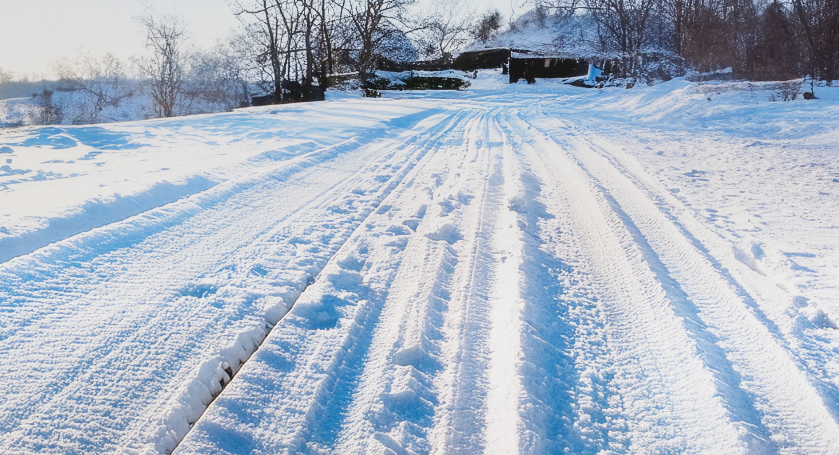 この辺りは昨日の大雪で雪と氷が混ざっているみたい……。スリップしないか心配だね。