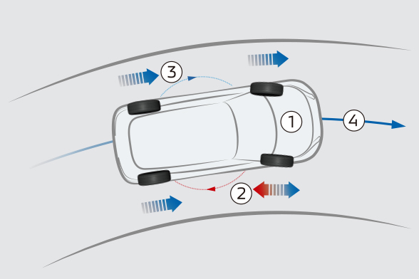 *1AYC=Active Yaw Control ブレーキを制御することで、車両に働くヨーモーメントを最適に制御し、高い旋回性能と走行安定性を実現します。