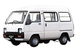 角型ヘッドライト、ワイドなフロントガラスなど特徴的なデザインで新登場。トラック、バンとも4WDを設定し、バンにはハイルーフも加えるなど、より多彩に充実。昭和62年にはクラス初のスーパーチャージャー付車を投入。平成2年から規格改定に伴い660ccに。