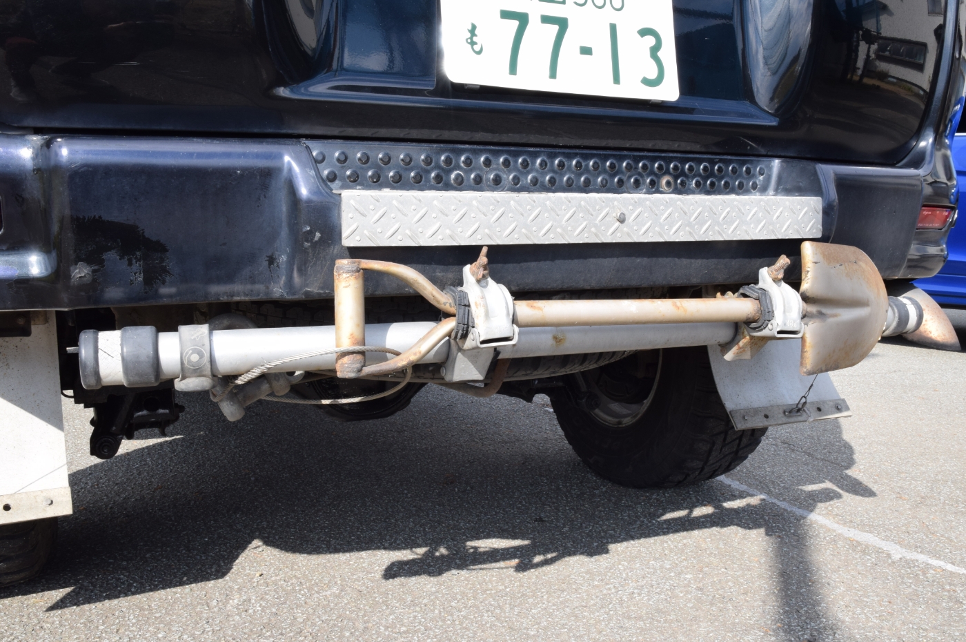 リヤに装着されたシャベルやルーフキャリアなどが、このクルマがアウトドアアクティビティで使われていることを物語っている。フロントのバンパーガードはアクセサリーで、簡単に脱着可能なものなのだそうだ。今年の「三菱スターキャンプ」にも参加している。