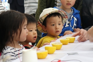 みんなのレモンをつなげるとLEDライトの明かりが強くなる!