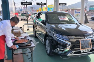 アウトランダーPHEVの電気を使ってフランクフルトを焼く実演も大好評でした!